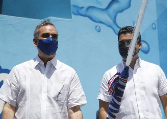 El Presidente Abinader y el director ejecutivo del Instituto Nacional de Aguas Potables (Inapa), Wellington Arnaud, inauguraron presidieron la inauguración de la planta potabilizadora y el depósito regulador del acueducto Partido-La Gorra, en Dajabón, tras 20 años de espera de la comunidad, con una inversión de RD$63, 774,607.45.