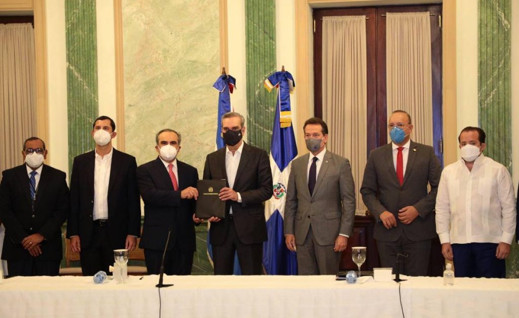 El presidente Abinader firmó el documento y entregó ejemplares a los empresarios del sector industrial de la República Dominicana.