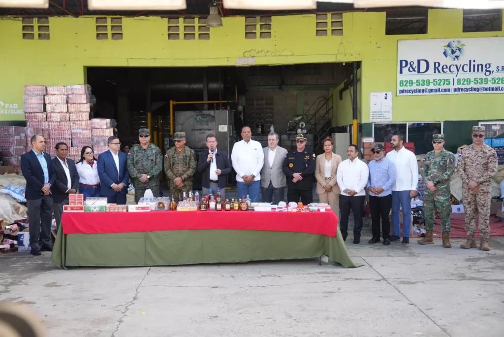 El ministro de Industria, Comercio y Mipymes, Víctor -Ito- Bisonó, informó que en la incineración de mercancías ilegales hay una gran cantidad de “alcohol adulterado, alcohol de tráfico ilegal y alcohol de origen ilícito, como el clerén. Estos productos fueron confiscados durante épocas de mayor consumo, como Navidad y Semana Santa”.