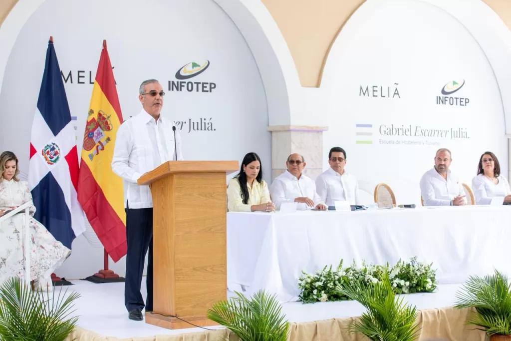 Abinader agradeció a la familia Escarrer y a la empresa por impulsar, junto al Instituto Nacional de Formación Técnico Profesional (INFOTEP), esta alianza público-privada orientada a fortalecer la capacitación técnica del talento dominicano, consolidando cualidades propias como la alegría, la amabilidad y la hospitalidad.