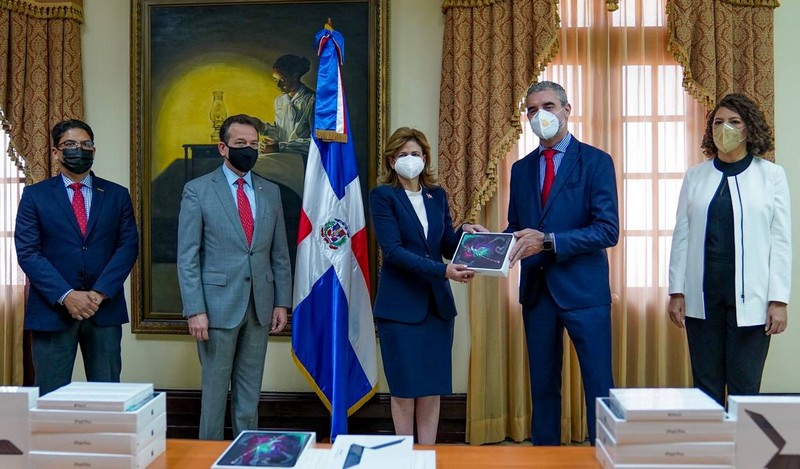 Santo Domingo. La Compañía Coca-Cola donó este jueves a la vicepresidencia de la República, 100 iPads, donación que será utilizada en apoyo al Plan Nacional de Vacunación (VACUNATE RD) como parte de los esfuerzos del Gobierno para reducir la propagación del COVID-19 en el país en alianza con los sectores productivos.