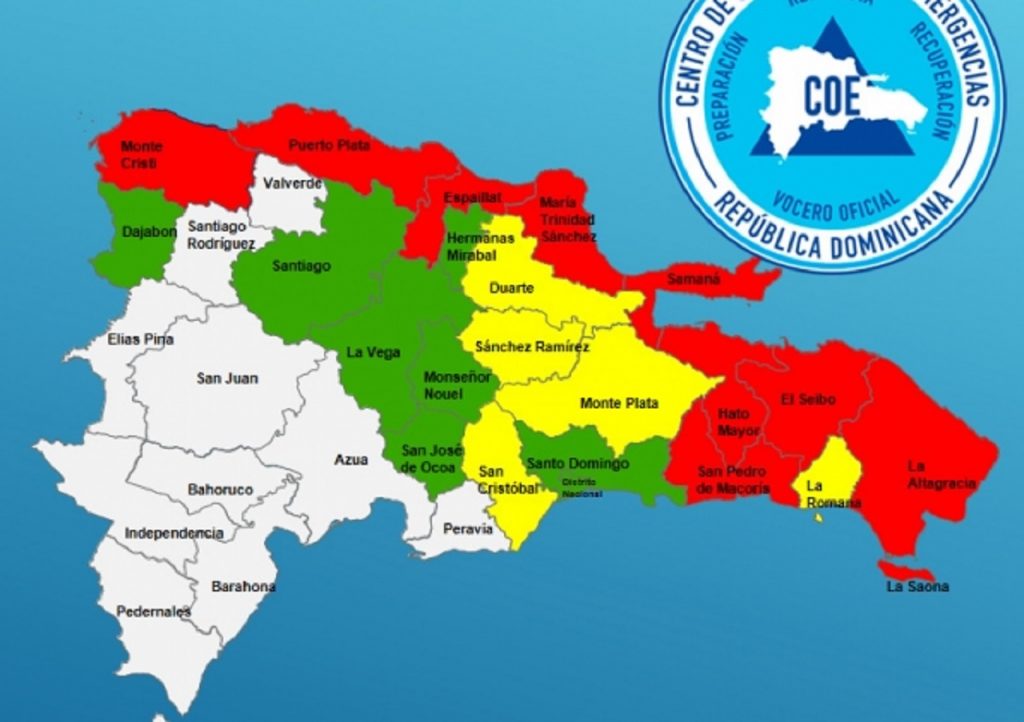 Ante ello, fue incrementada a alerta roja La Altagracia, Puerto Plata, Samaná, Montecristi, San Pedro de Macorís, Espaillat, Hato Mayor, María Trinidad Sánchez y El Seíbo.
