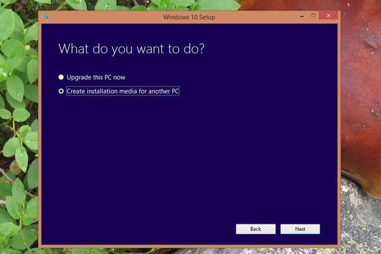 Esta herramienta facilita la conversión de cualquier memoria USB en un instalador de arranque de Windows 10, y también te permite descargar el archivo ISO de Windows 10 para su uso futuro. Una vez descargada la herramienta, ejecútala. Te preguntará si deseas actualizar tu PC actual o crear medios de instalación para otra PC.