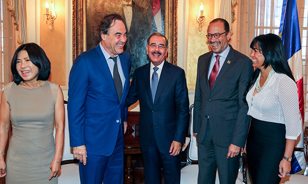 Al salir del encuentro con el Jefe del Estado dominicano, Stone se mostró complacido con la impresión que le provocó su conversación con Danilo Medina a quien calificó como un presidente muy progresista, con visión de futuro y que le hizo saber su interés en la realización de películas también progresistas en la gestión del actual ministro de Cultura, José Antonio Rodríguez.