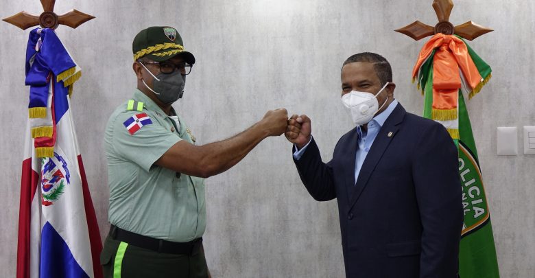 El director de la Dirección General de Seguridad de Tránsito y Transporte Terrestre (DIGESETT), general de brigada Ramón Antonio Guzmán Peralta, P.N., recibió en su despacho al senador de la provincia Monseñor Nouel (Bonao) y merenguero, Héctor Acosta (El Torito).