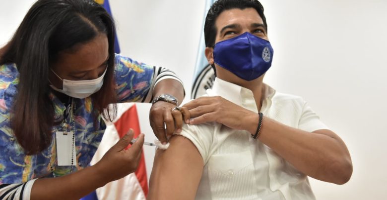 Tras recibir la dosis, Arnaud felicitó al presidente de la República, Luis Abinader; a la vicepresidenta Raquel Peña y al Gabinete de Salud por el extraordinario trabajo que están realizando.