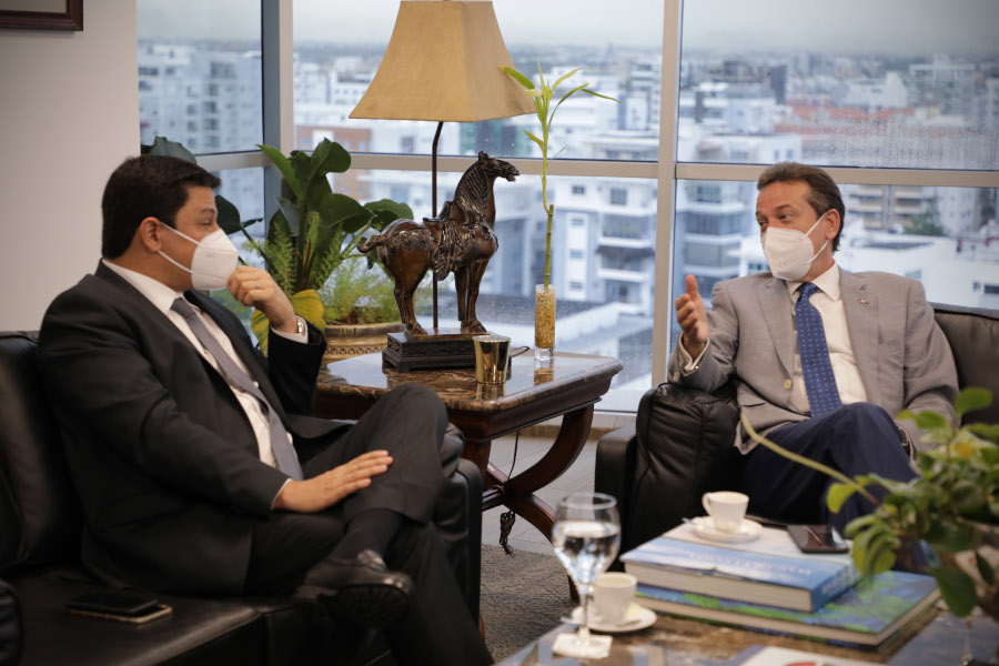 El ministro de Industria, Comercio y Mypimes, Víctor -Ito-Bisonó, recibió en su despacho la visita de cortesía del embajador de Colombia en la República Dominicana, Daniel Alberto Cabrales, quien manifestó deseos de éxitos durante su gestión e interés por estrechar vínculos de colaboración comercial.