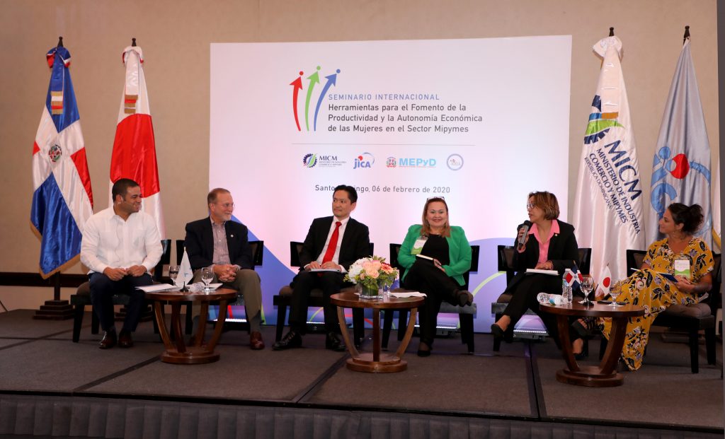 La actividad fue parte del programa de conferencias que se desarrolló durante el seminario internacional “Herramientas para el Fomento de la Productividad y la Autonomía Económica de las Mujeres en el Sector Mipymes”, el cual organizó el Ministerio de Industria, Comercio y Mipymes (MICM) y la Agencia de Cooperación Internacional del Japón (JICA).