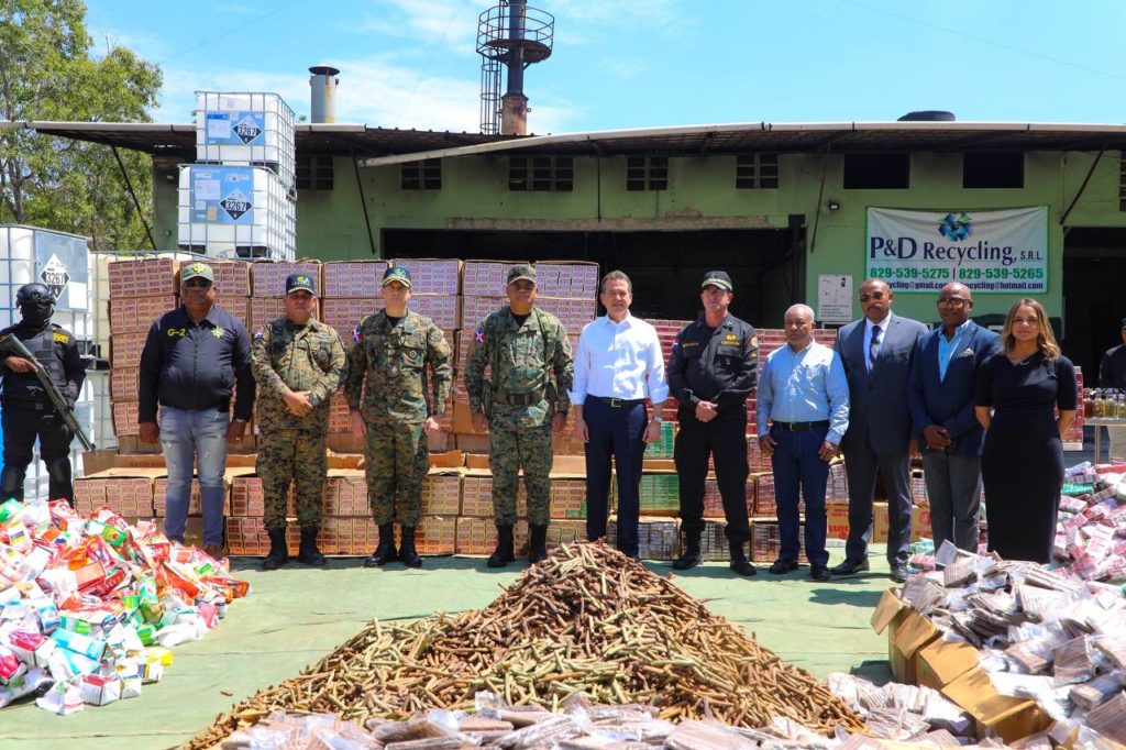 Haina, San Cristóbal – El Cuerpo Especializado de Control de Combustibles y Comercio de Mercancías (CECCOM) incineró 2,323,219 unidades de cigarrillos y tabacos de diferentes marcas, así como más de 7,631,000 botellas de alcohol no apto para consumo humano, 3,028 botellas de clerén y 23,510 unidades de medicamentos falsificados, por un valor aproximado de 50 millones de pesos.