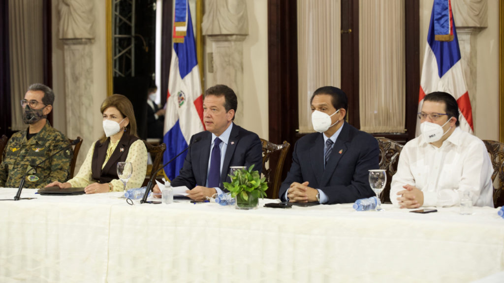 En la rueda de prensa, realizada en el Salón Las Cariátides del Palacio Nacional, estuvieron presentes el mayor general Carlos Luciano Díaz Morfa, ministro de Defensa; Daniel Rivera, ministro de Salud Pública; Eduardo Sanz Lovattón, director general de Aduanas; Luis Valdéz, director general de Impuestos Internos (DGII); mayor general Edward Sánchez Martínez, director de la Policía Nacional; vicealmirante José Manuel Ulloa, director de la Dirección de Control de Drogas (DNCD); general de brigada César Augusto Miranda, director del Cuerpo Especializado de Control de Combustibles (CECCOM).