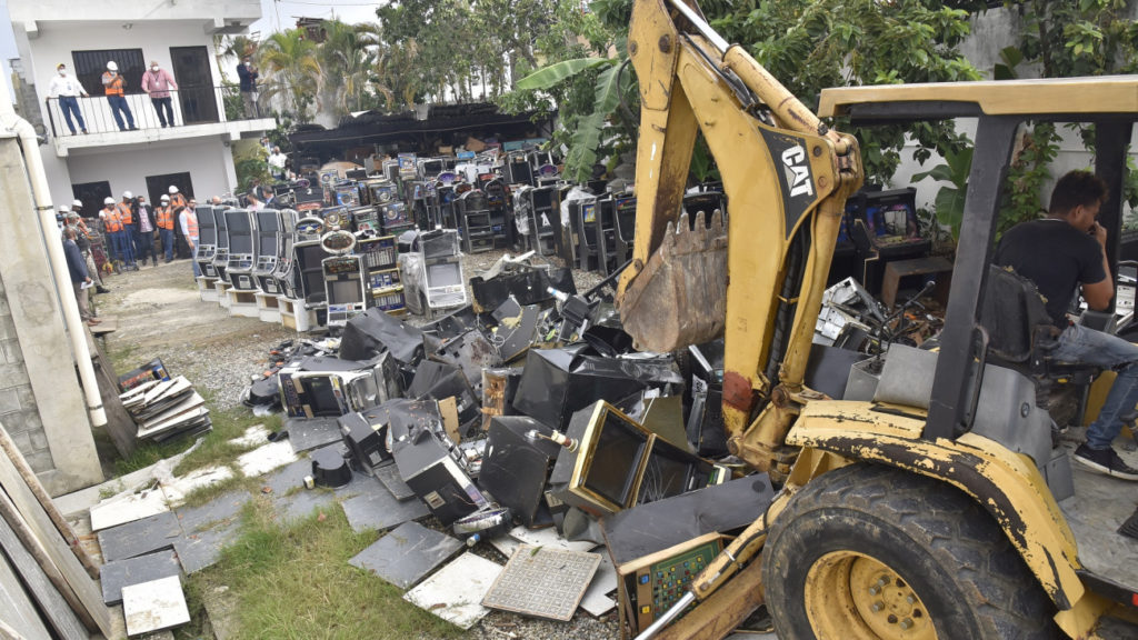 Santo Domingo. – La Dirección de Casinos y Juegos de Azar del Ministerio de Hacienda destruyó 4,462 equipos para juegos de azar, producto de incautaciones entre noviembre de 2020 y noviembre de 2021, en distintos establecimientos comerciales y de apuestas.