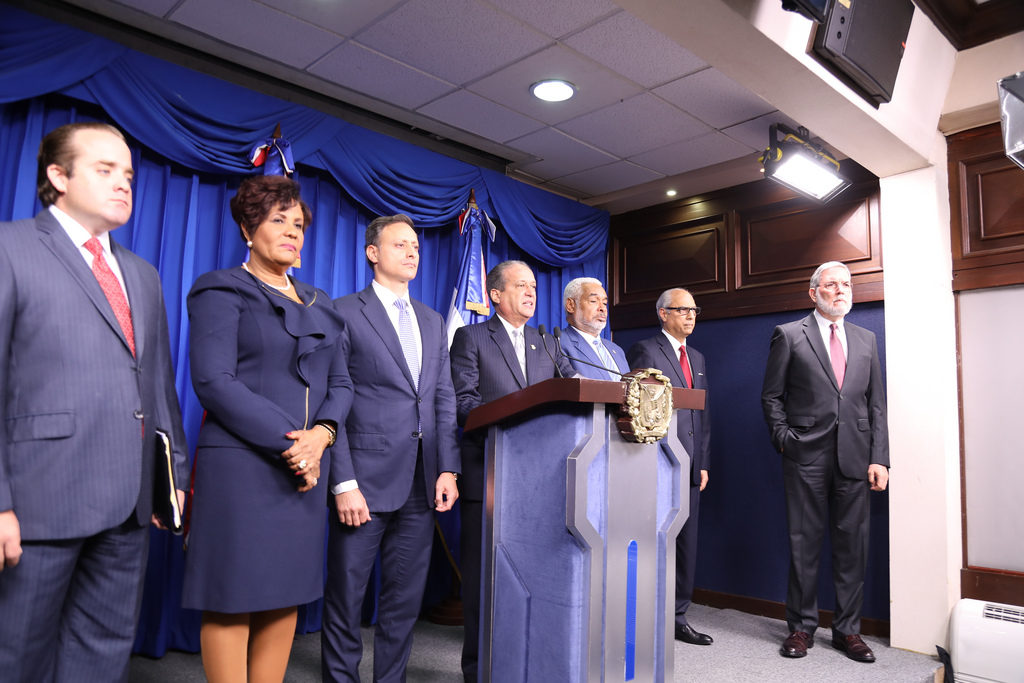 • Mariano Germán Mejía, presidente de la SCJ, Jean Alain Rodríguez, procurador general de la República, Radhamés Camacho, presidente de la Cámara de Diputados, José Paliza, senador por la provincia Puerto Plata y presidente del Partido Revolucionario Moderno, Josefa Castillo, diputada por el Partido Revolucionario Moderno y Fran Soto, juez de la SCJ y secretario del CNM.