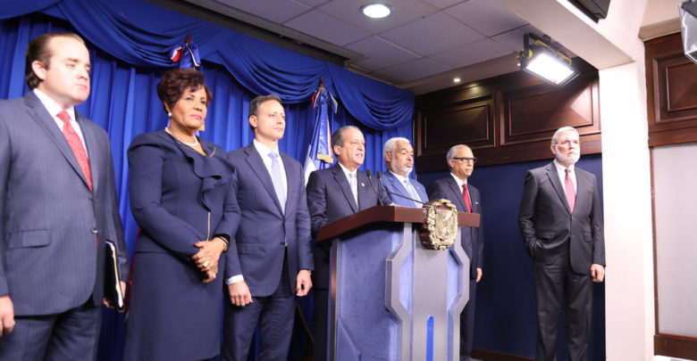 • Mariano Germán Mejía, presidente de la SCJ, Jean Alain Rodríguez, procurador general de la República, Radhamés Camacho, presidente de la Cámara de Diputados, José Paliza, senador por la provincia Puerto Plata y presidente del Partido Revolucionario Moderno, Josefa Castillo, diputada por el Partido Revolucionario Moderno y Fran Soto, juez de la SCJ y secretario del CNM.