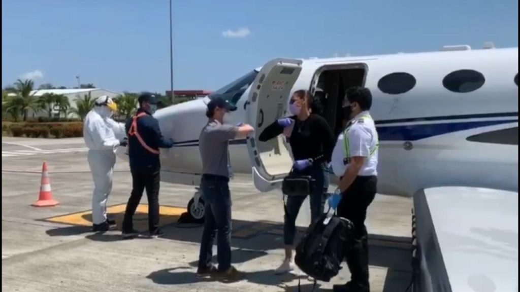 “Extiendo el agradecimiento por hacer posible que yo haya podido regresar a mi país. Estaba ya ansiosa de poder estar con mi familia”, manifestó emocionada Gina Mambrú, tan pronto bajó de la aeronave propiedad de Helidosa Aviation Group.