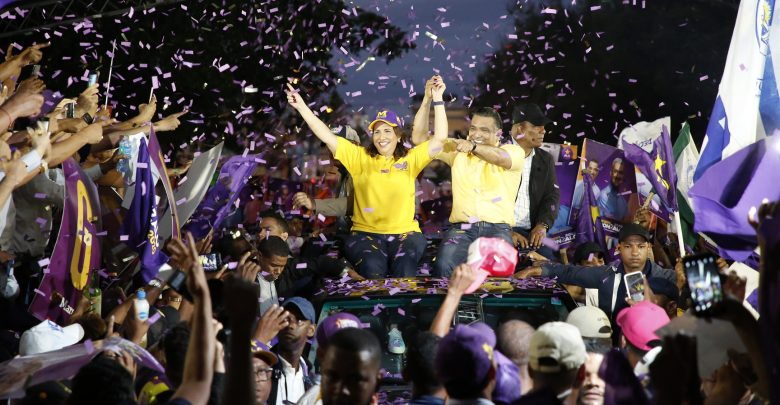 Junto a miles de simpatizantes, la también miembro del Comité Político de esa organización pintó de morado las calles de los sectores Villa Duarte, Simonico, Los Pinos y La Francia, en un recorrido que se inició pasadas las 3:00 de la tarde