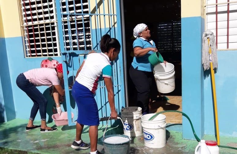 El Distrito Educativo 11-06 en Los Hidalgos se sumó a la jornada nacional de limpieza profunda con el apoyo de la comunidad educativa local, quienes asumen las recomendaciones del MINERD y Salud Pública para proteger a los estudiantes y docentes. Lo mismo pasa con el Distrito Educativo 15-04 y el 13-05.