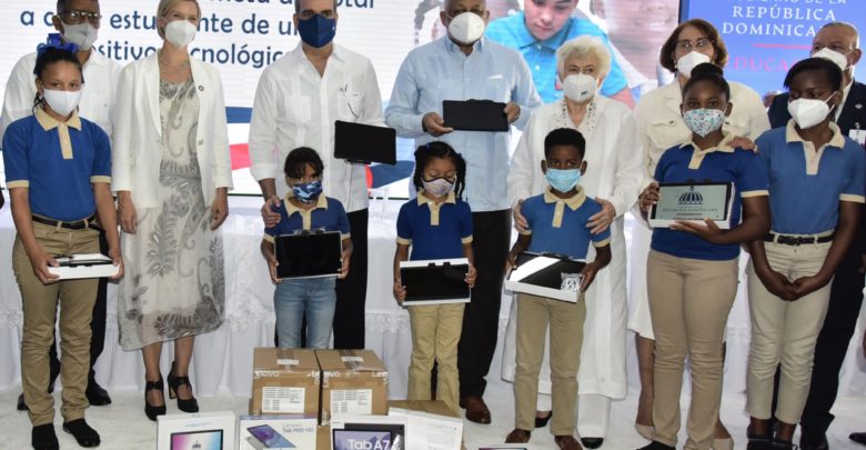 Santo Domingo.- El presidente Luis Abinader y el ministro de Educación Roberto Fulcar presentaron más de medio millón de dispositivos tecnológicos que han llegado al país y que serán entregados a estudiantes de escuelas públicas del nivel de educación primaria.