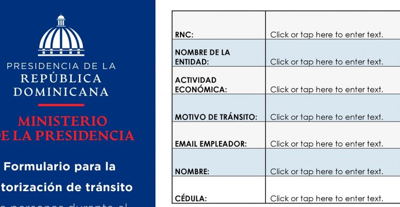 Recordó que para obtener el documento, los establecimientos que se encuentren dentro de los autorizados a circular en toque de queda, deben dirigirse a la página www.coronavirusrd.gob.do, ingresar al apartado “solicitar permiso para libre tránsito en toque de queda”, y completar el formulario con los datos que se solicitan.