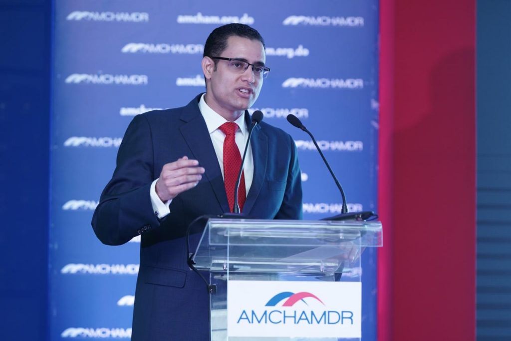 El ministro Jiménez fue el orador invitado en el almuerzo mensual de la Cámara Americana de Comercio de la República Dominicana (AMCHAMDR) con el tema Sostenibilidad: un reto público-privado.