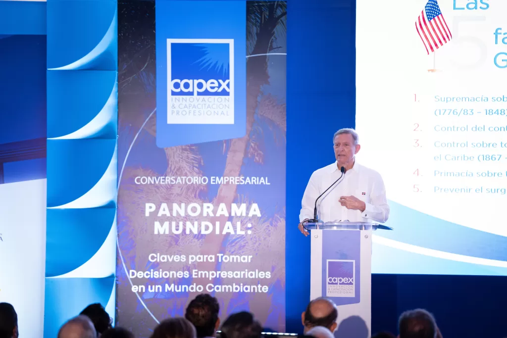 El diplomático abordó el tema durante el primer conversatorio empresarial de Capex, Centro de Innovación y Capacitación Profesional celebrado este jueves bajo el título “Panorama Mundial: Claves para Tomar Decisiones Empresariales en un Mundo Cambiante”, espacio en el que, de la mano de la periodista y moderadora Grisbel Medina, nombró los principales retos y oportunidades que enfrenta el empresariado dominicano en un contexto desafiante como el que experimenta actualmente.