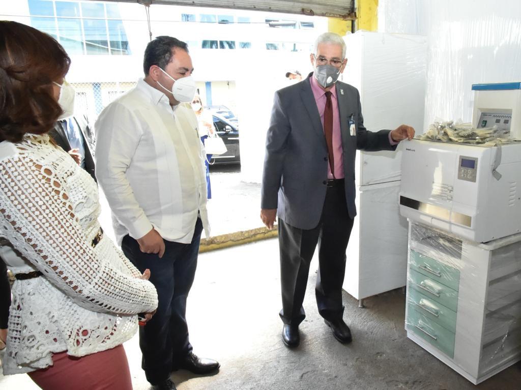 SANTO DOMINGO.- De la mano del director del Servicio Nacional de Salud, Dr. Mario Lama, el director Nacional de Odontología, Mario Bournigal, el Dr. Julio Landrón director del Hospital Traumatológico Doctor Ney Arias Lora, recibió la totalidad de los equipos instrumentales e insumos necesarios para poner en funcionamiento a toda capacidad tres unidades de odontología del centro de salud.