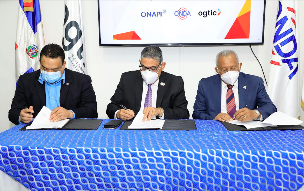 Santo Domingo. – La Oficina Gubernamental de Tecnologías de la Información y Comunicación (OGTIC), la Oficina Nacional de Derecho de Autor (ONDA) y la Oficina Nacional de Propiedad Industrial (ONAPI), firmaron un acuerdo interinstitucional con la intención de crear un Plan Nacional de Regularización de activos intangibles tecnológicos del Estado.
