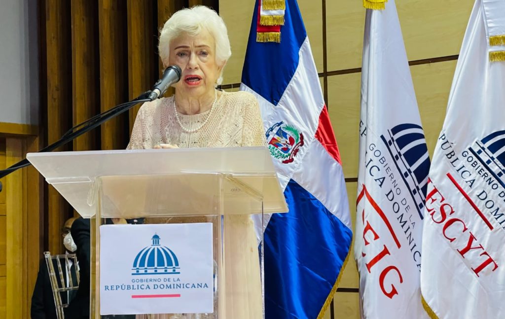 Durante al acto, Ortiz Bosch recibió por parte del MESCYT una plata de reconocimiento por su trayectoria y aportes al país.