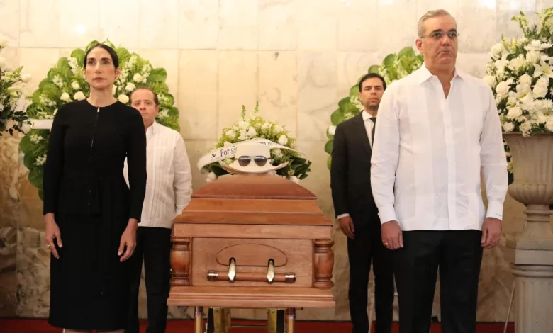 El presidente Abinader rindió guardia de honor ante el ataúd de este ícono de la cultura dominicana, junto con la primera dama, Raquel Arbaje, y los ministros de Cultura, Roberto Ángel Salcedo, y de la Presidencia, José Ignacio Paliza.
