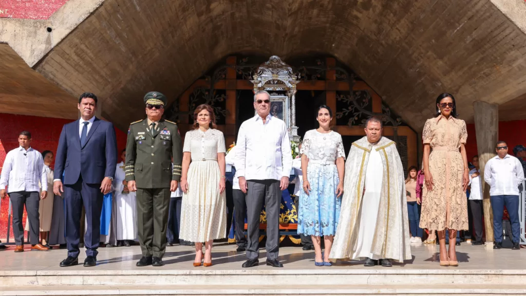 Higüey.- El presidente Luis Abinader participó en la eucaristía con motivo del Día de Nuestra Señora de la Altagracia, madre espiritual y protectora del pueblo dominicano, acompañado de su esposa, la primera dama Raquel Arbaje, y de la vicepresidenta Raquel Peña.