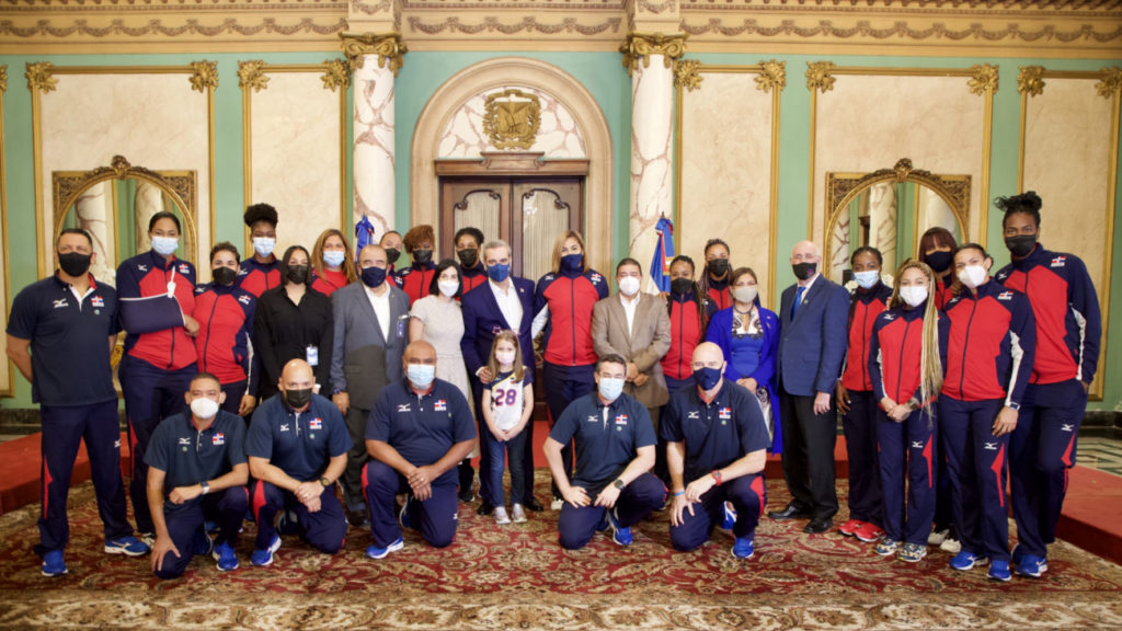 SANTO DOMINGO. – El presidente Luis Abinader y la primera dama Raquel Arbaje recibieron la tarde de este martes en el Palacio Nacional a las Reinas del Caribe, tras su regreso al país luego de una histórica participación en la Liga de Naciones 2021 en Italia, donde obtuvieron el sexto lugar entre los 16 países participantes.
