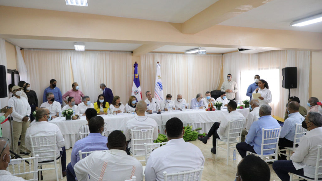 Expusieron sus necesidades al mandatario Víctor Matos, presidente de la Cooperativa Agropecuaria de Ganaderos del Sur; Jesús Reyes, productor de plátano y guineo; Nelson Custodio, productor de plátano y Manuel Tejada, presidente de Desarrollo Provincial de Azua.