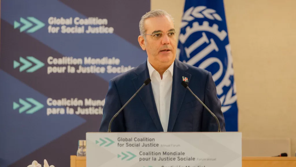 «En la República Dominicana, creemos firmemente que estos valores se concretan en la justicia social, y esta debe ser alcanzada sin enfrentamientos de clases ni discursos que enfrenten a ricos y pobres, sino desde un enfoque de convivencia, respeto y oportunidades para todos», expresó el mandatario durante su intervención en el Foro Anual de la Coalición Mundial para la Justicia Social, celebrado en la sede de la Organización Internacional del Trabajo (OIT).