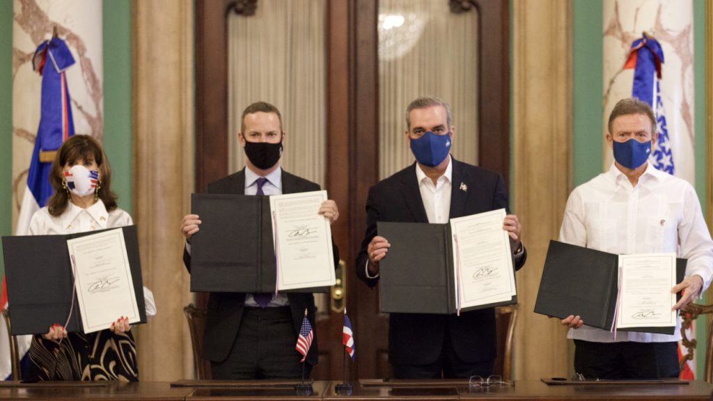 El acuerdo fue firmado, en representación de la República Dominicana por el presidente Luis Abinader y el canciller, Roberto Álvarez; mientras que por los Estados Unidos firmaron la embajadora Robin Bernstein y Adam Boehler, director ejecutivo de la Corporación Financiera de Desarrollo Internacional.