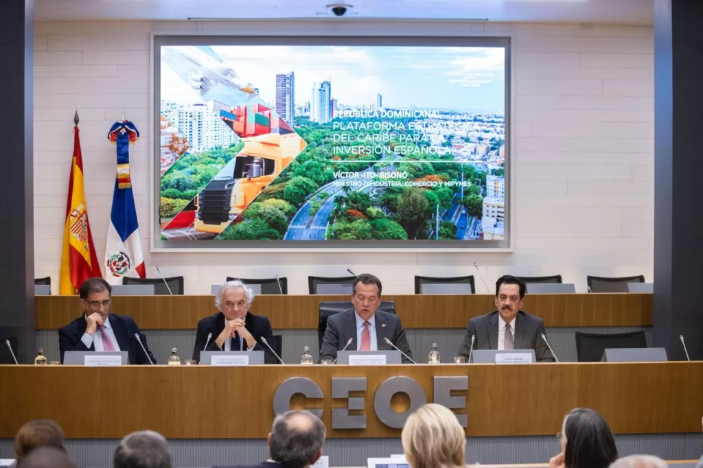 Madrid, España. – El ministro de Industria, Comercio y Mipymes de la República Dominicana, Víctor -Ito- Bisonó, participó como expositor principal en el Encuentro Empresarial España–República Dominicana, organizado por la Confederación Española de Organizaciones Empresariales (CEOE), en colaboración con ICEX España Exportación e Inversiones, la Cámara de Comercio de España y la Embajada dominicana en el Reino de España.