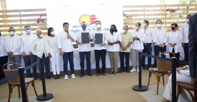 El acto de firma estuvo encabezado por el presidente Abinader, en compañía del ministro de Turismo y otros funcionarios.
