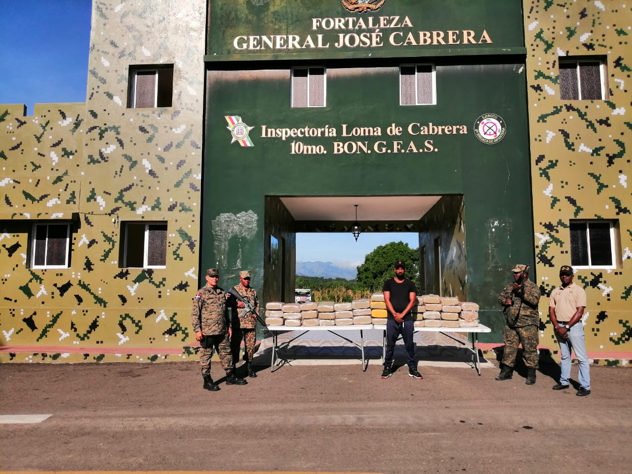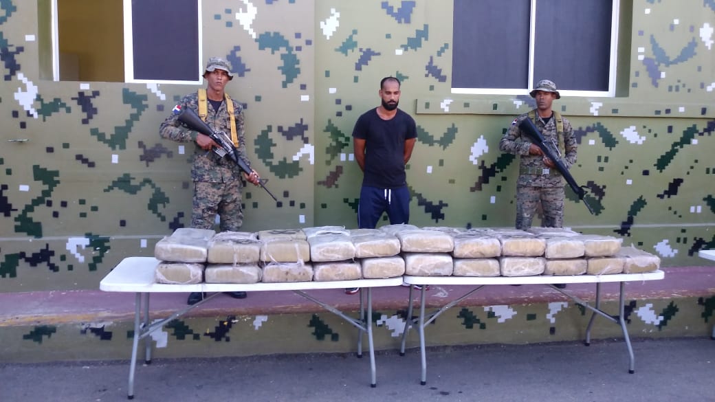 Miembros del Ejército pertenecientes a la 4ta. Brigada de Infantería, ERD., mientras realizaban su habitual patrulla militar detuvieron en el sector El Cajuil del municipio Loma de Cabrera, provincia Dajabón, a una persona que responde al nombre de Hennry de Jesús, el cual no portaba documentos de identidad y se trasladaba en un camión marca DAIHATSU, tipo furgón, color blanco, cuando fue requisado se detectaron oculto en el interior en un túnel en la parte superior de dicho vehículo, la cantidad de 41 pacas de un vegetal presumiblemente Marihuana con un peso aproximado de 410 libras.