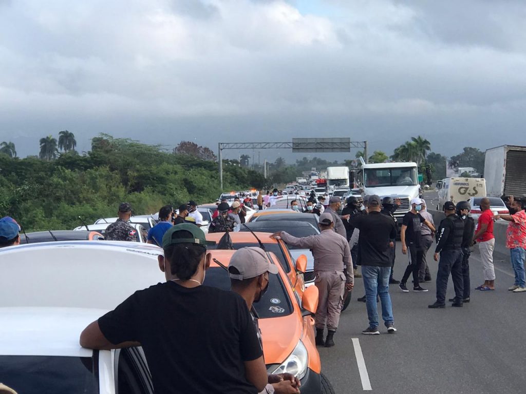 Los profesionales del transporte se concentraron en la avenida Las Carreras, en la entrada la ciudad en la autopista Duarte en el sector El Embrujo I y otros puntos de la ciudad.