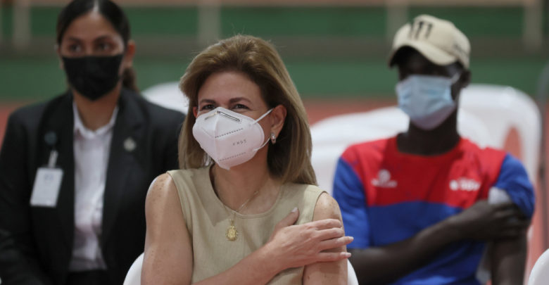 SANTO DOMINGO. – La vicepresidenta de la República, Raquel Peña, recibió la mañana de hoy la primera dosis de la vacuna contra el COVID-19, en el Pabellón de Combate del Centro Olímpico Juan Pablo Duarte de esta capital.