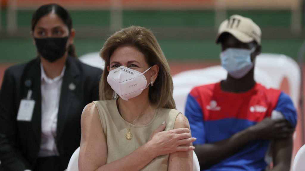 SANTO DOMINGO. – La vicepresidenta de la República, Raquel Peña, recibió la mañana de hoy la primera dosis de la vacuna contra el COVID-19, en el Pabellón de Combate del Centro Olímpico Juan Pablo Duarte de esta capital.